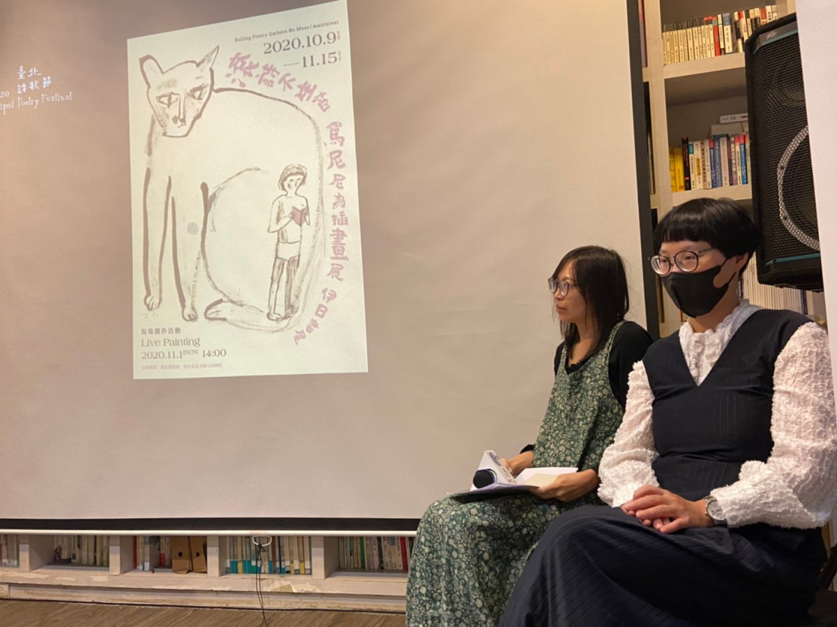 臺北詩歌節策展人楊佳嫻開場直接破題,同樣畢業於師大美術系的馬尼尼為、潘家欣,雖是學姊學妹的關係,但彼此在校園中不認識,反倒是後來在創作的道路上,產生了有趣的聯繫以及深度對話的可能,也很高興邀請到林蔚昀擔任主持人。