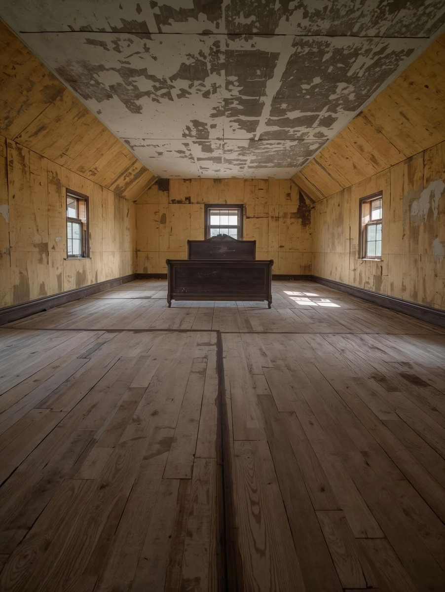 - 古董級訂製家具:一卡皮箱就能入住! 隨屋附贈一張重型實木床架(已釘死於地板),床緣帶有獨一無二的有機咬合紋理(仿牙痕工藝),展現歷任居住者強烈的情感連結。