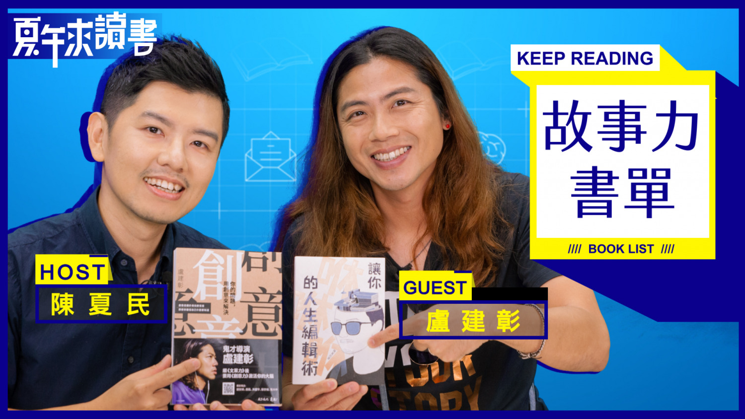 全台灣最會說故事的導演、創意鬼才盧建彰來到《Keep Reading夏午來讀書》,與主持人陳夏民一起解密「故事力書單」,他們各自以《創意力:你的問題,用創意來解決》、《讓你咻咻咻的人生編輯術》、《藥命》、《主婦的午後時光》為例,探究創意力與故事力的來源與養成。