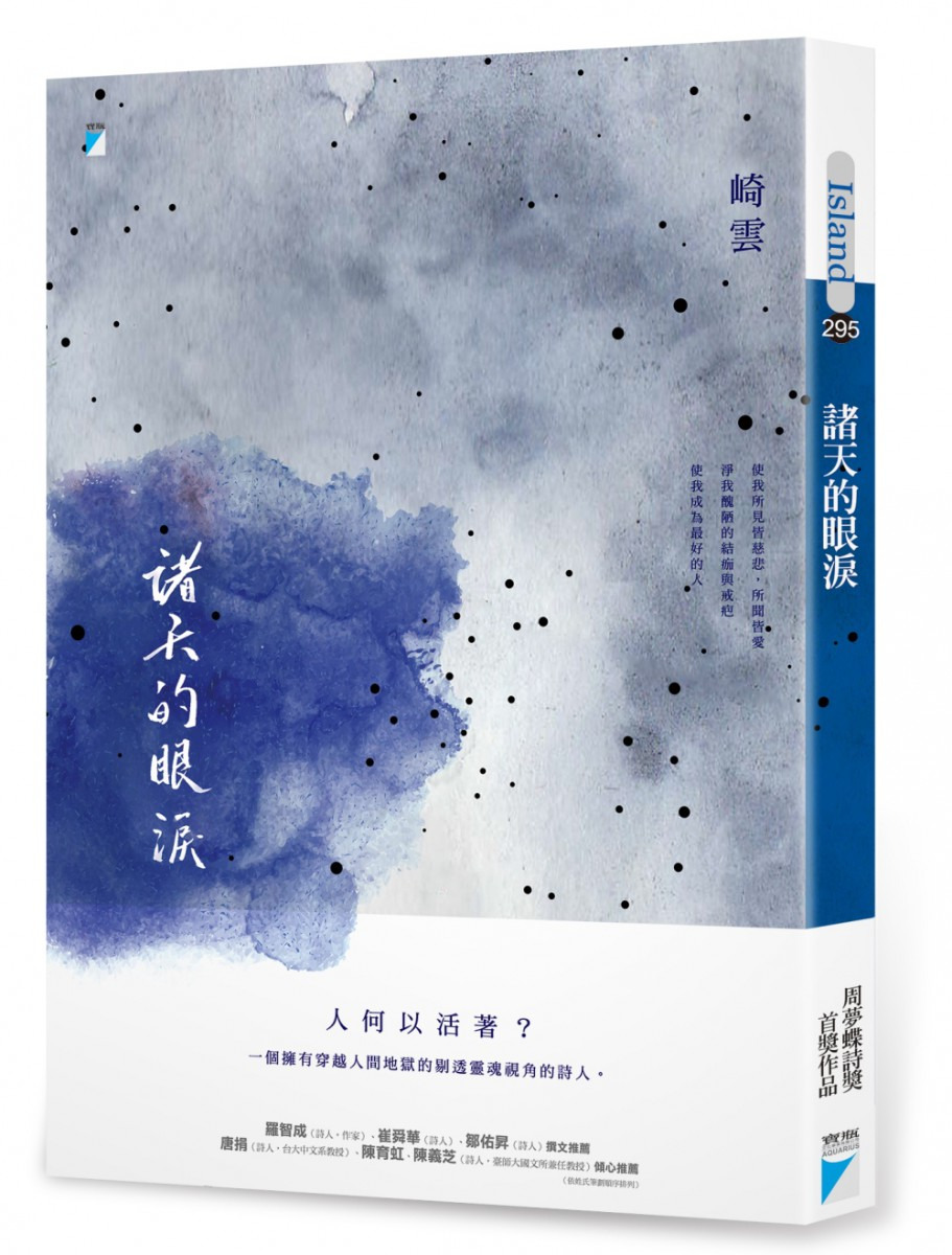 《諸天的眼淚》絕對是詩人崎雲的創作生涯中,最特別也最具重量的作品。從佛理角度切入,沒有過多憂鬱濾鏡,呈現了無盡的詰問與深省,雖然解讀自身,藝術性的語言卻讓讀者讀到了自己。雖然不捨崎雲從「假裝自己是完整的琉璃/揣緊一切碎裂的音響」到「我已盡力保守這樣的自己/而不為誰感到抱歉」的心路歷程,但身為讀者,我深深感謝崎雲完成了這本著作。來看看青年詩人崎雲的普魯斯特問卷吧!